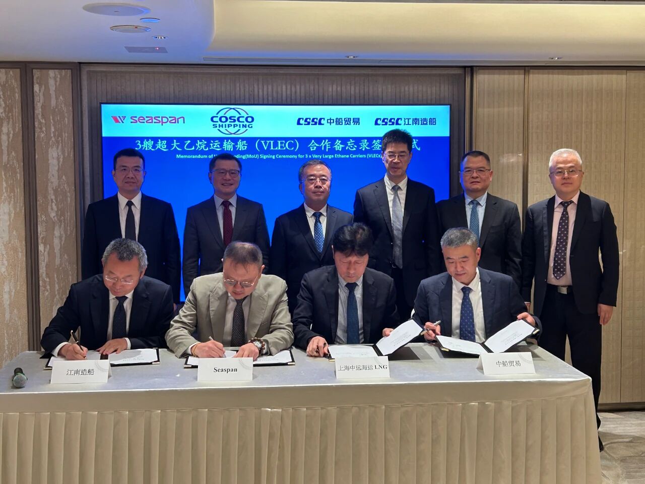王國強同時(shí)見(jiàn)證了中船集團與中旅集團簽署戰略合作協(xié)議,中船集團旗下江南造船聯(lián)合中船貿易與Seaspan、上海中遠海運LNG簽署超大乙烷運輸船(VLEC)合作備忘錄;與相關(guān)中央企業(yè)舉行會(huì )談并簽署戰略合作協(xié)議。