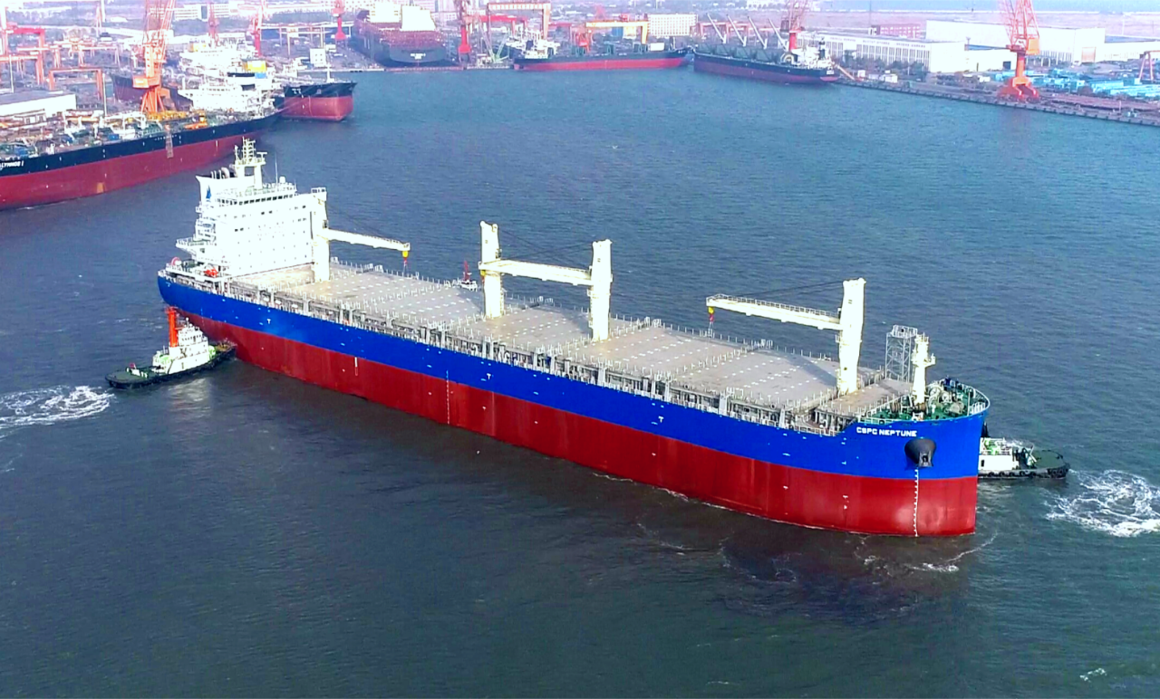 12月5日,中船集團旗下大連造船山船重工為中信金融租賃有限公司建造的8.5萬(wàn)噸多用途紙漿運輸船5號船“海王星”號命名交付。