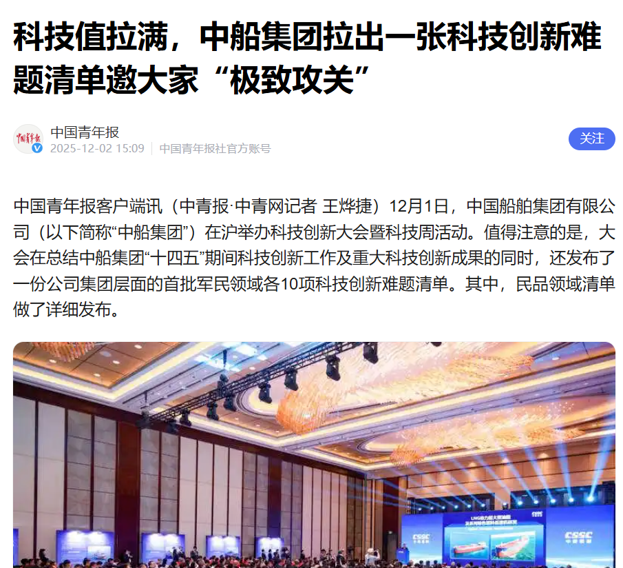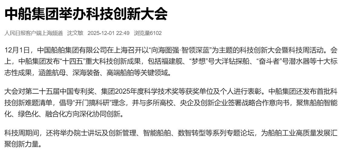 12月1-5日,中國船舶集團有限公司在上海舉辦了科技創(chuàng )新大會(huì )暨科技周活動(dòng)。