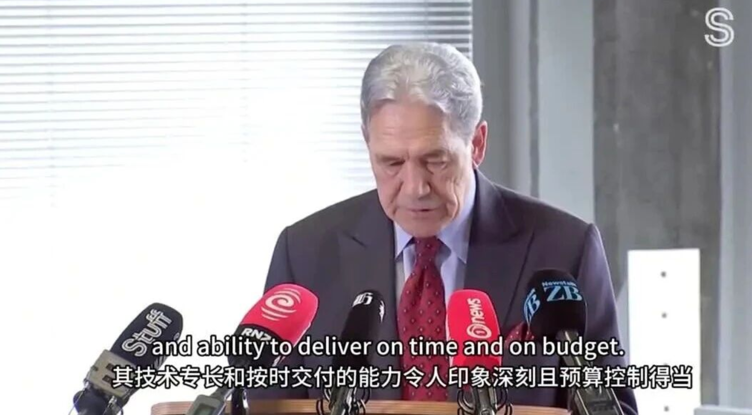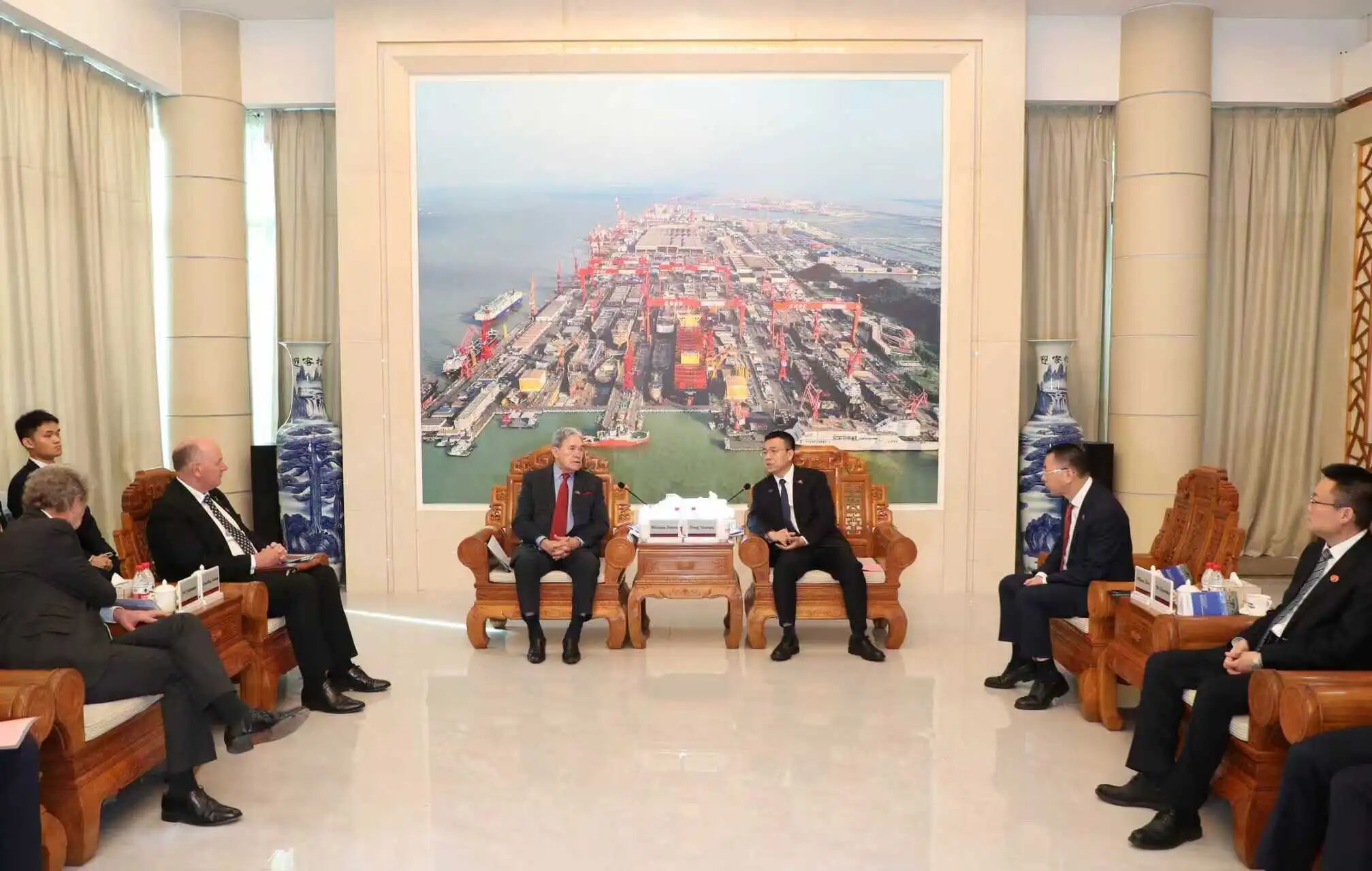 新西蘭外交部兼鐵道部部長(cháng)Winston Peters(溫斯頓·彼得斯)、新西蘭FHL公司董事長(cháng)Chris McKenzie(克里斯·麥肯齊)、中船集團副總經(jīng)理彭原璞出席簽約儀式并致辭,新西蘭駐華大使Jonathan Austin(喬·文博)、駐廣州總領(lǐng)事Michael Zhang(張典)等出席簽約儀式。