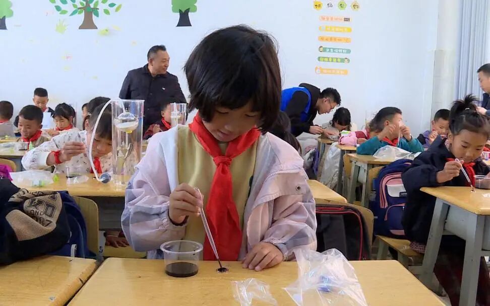 深秋的陽(yáng)光灑在教室桌椅上,斑駁的光影中躍動(dòng)著(zhù)一抹抹深藍身影,他們或是捧著(zhù)船模細心講解,或是俯身指導孩子操作試驗教具,或是展示科學(xué)的神奇“魔法”。